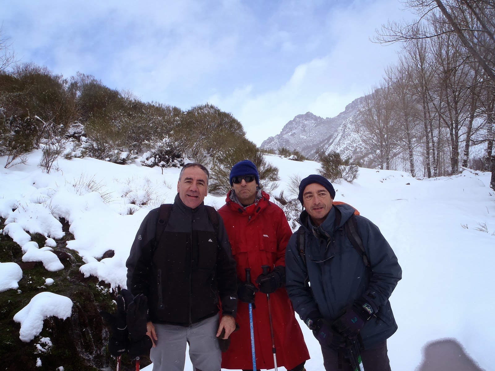 Nos pusimos las raquetas nada más salir del coche, una capa de 20cm recién caída la noche anterior que nos hizo disfrutar la ruta. La ida de la ruta tiene pocas dificultades, simplemente hay que seguir el camino (PR LE46) que se adentra con dirección Norte en la Vega de los Formos. A unos 3 km del inicio se abre el camino y disfrutamos del valle, rodeado de montañas. Desde aquí podemos ver el collado de Acebal y alguno de los picos de la zona (Peña de los Vientos, de los Fornos, Rapines, Rapona,..). Desde este punto el camino se vuelve más pindio y nos lleva a un collado, Collado de Acebal, donde una puerta nos separa de Asturias y el puerto de Redes. No acompaña el tiempo y decidimos volver, aunque cambiamos el camino, y nos vamos al Arrollo de la Aliviada. Un gran descubrimiento, es una valle encajado que disfrutamos con algún problema para avanzar en algunas zonas, pero con pericia conseguimos llegar al fin del valle donde un camino nos lleva de nuevo a la carretera.